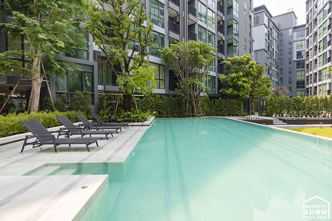 ร่มรื่นทีเดียว สระว่ายน้ำและพื้นที่สีเขียวจะอยู่กึ่งกลางระหว่าง Tower B, C และ D