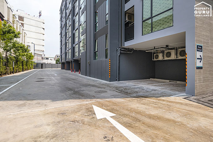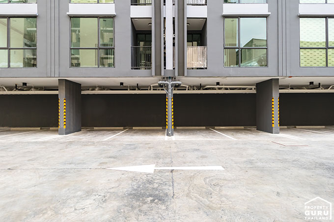 พื้นที่จอดรถเป็นแบบวนรถซ้ายค่ะ มีทั้งแบบจอดใต้อาคารและ Outdoor
