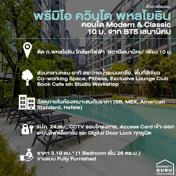 รีวิว-เยี่ยมชม "พรีมิโอ ควินโต พหลโยธิน" คอนโด Modern & Classic เพียง 10 ม. จาก BTS เสนานิคม