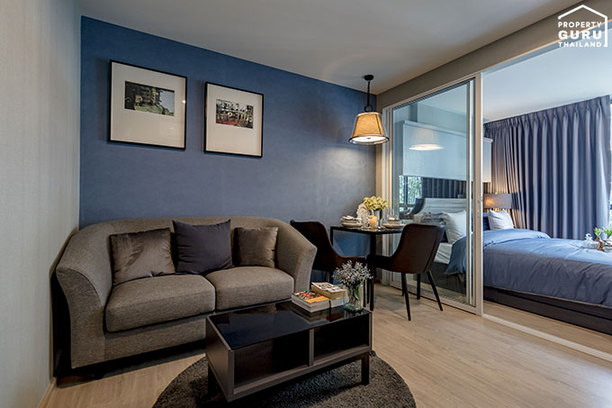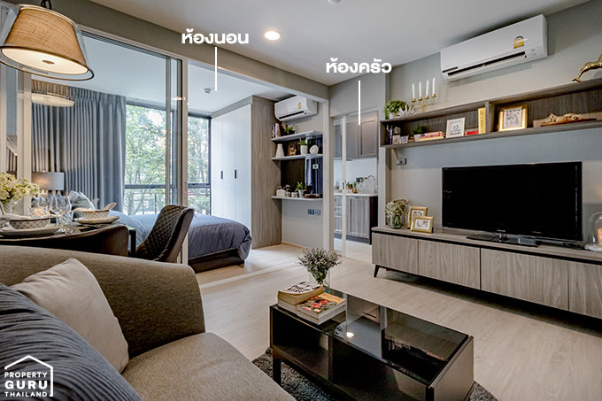 วันนี้เราจะไปชมห้องอย่าง 1 Bedroom พื้นที่ใช้สอย 28 ตร.ม. ซึ่งขายแบบ Fully Furnished ซื้อข้าวของเพิ่มอีกนิดๆ หน่อยๆ ก็หิ้วกระเป๋าเข้าอยู่ได้เลยค่ะ