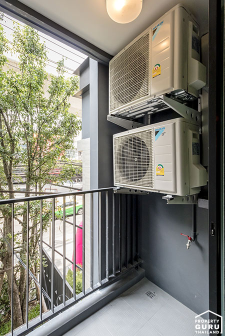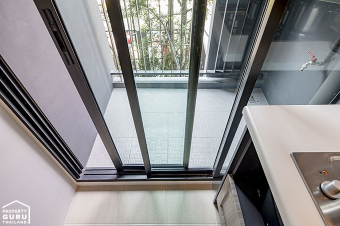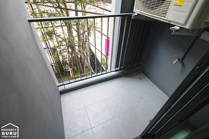 ระเบียงกว้างพอที่จะตากผ้าและวางเครื่องซักผ้า หรือวางต้นไม้เล็กๆ ได้