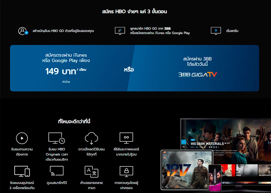 อีกเจ้าจากฝั่งอเมริกา ที่รวบรวมหนังดังทำเงินจากฮอลลีวูด และรายการคุณภาพของมา HBO มาไว้ในนี้ พร้อมหนังและซีรีส์ใหม่จากค่าย Warner Bros และ DC Coomic แฟนหนังของ 2 ค่ายนี้ไม่ควรพลาด ซึ่งลูกค้าในไทยสามารถใช้ HBO Go ผ่านแอป AIS Play และกล่อง AIS Play Box ได้* (*สอบถามทาง AIS) ใครที่เป็นลูกค้า AIS อยู่แล้วก็สะดวกมากๆ เลยล่ะค่ะ