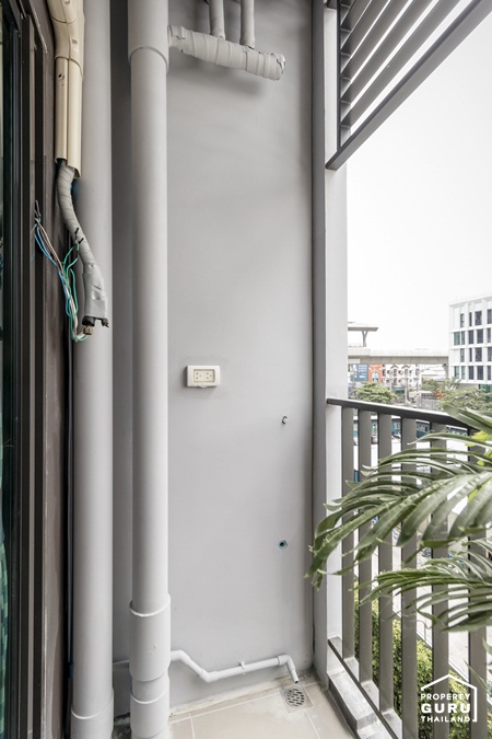 มีปลั๊กไฟกันน้ำ ติดตั้งเครื่องซักผ้าได้ที่จุดนี้ ส่วนคอมเพรสเซอร์ยกลอยไว้ด้านบน