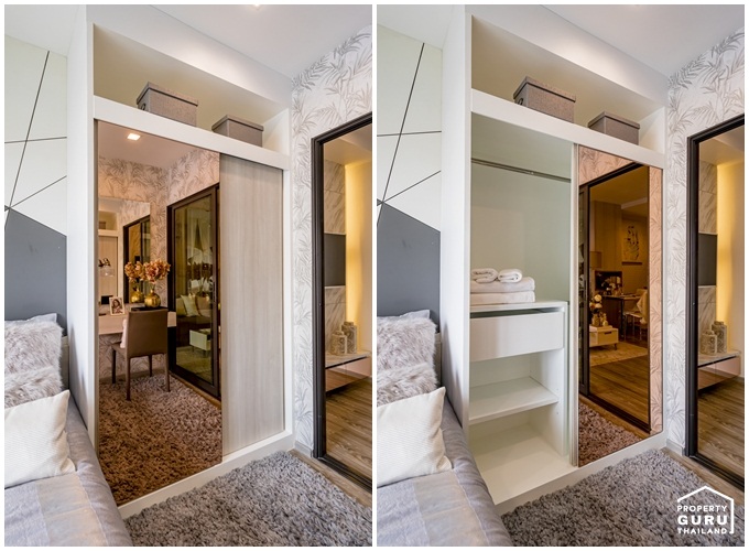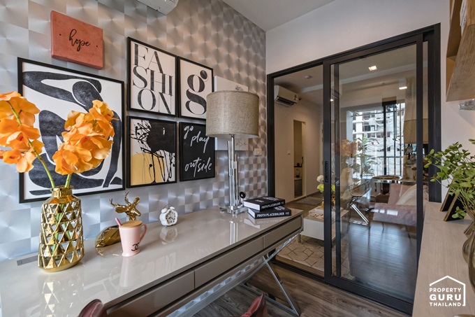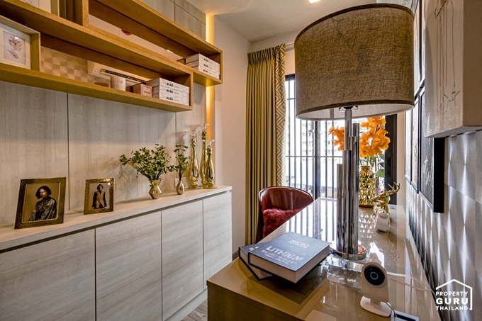 ในห้องตัวอย่างทางโครงการออกแบบเป็นห้องทำงานให้ดูเป็นไอเดียสามารถ Built-in เป็นตู้สำหรับเก็บของ