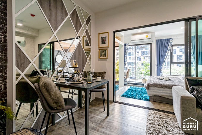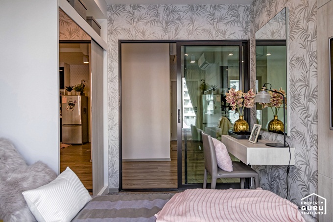 ตกแต่งด้วยกระจกเงาทำให้ห้องดูกว้าง สว่าง ไม่อึดอัด