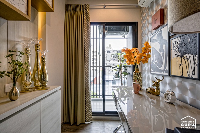 ห้องนี้อยู่ติดกับระเบียงใช้งาน ได้แสงธรรมชาติ ทำให้ห้องดูสว่าง