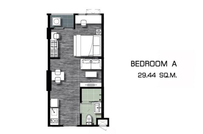 - Type A พื้นที่ใช้สอย 1 Bed 29.44 ตร.ม.