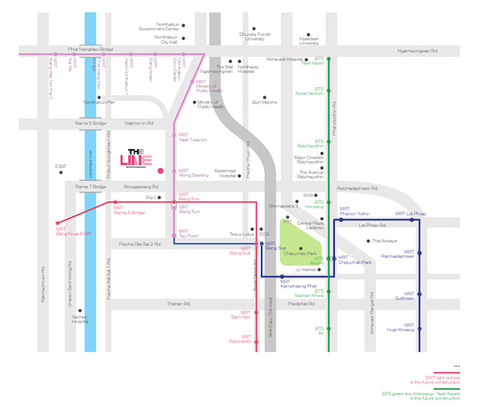เดอะ ไลน์ วงศ์สว่าง (The Line Wongsawang) ตั้งอยู่ติดถนนกรุงเทพ-นนทบุรี แขวงวงศ์สว่าง เขตบางซื่อ กรุงเทพมหานคร 10800 อยู่ห่างจากรถไฟฟ้า MRT สถานีวงศ์สว่างประมาณ 200 เมตร