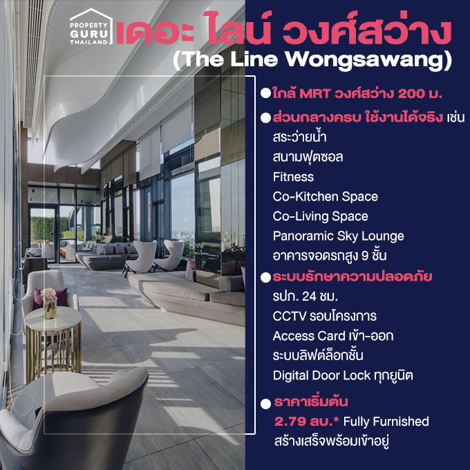 วันนี้เราอยู่กันที่ เดอะ ไลน์ วงศ์สว่าง (The Line Wongsawang) คอนโด High Rise สร้างเสร็จก่อนขายจาก "แสนสิริ" แน่นอนค่ะว่าความเป็น The Line ต้องอยู่ติดรถไฟฟ้าและโครงการนี้ก็ห่างจาก MRT สายสีม่วงสถานีวงศ์สว่าง เพียง 200 เมตรเท่านั้น เดินสบายสุดๆ และยังไม่ไกลจากทางด่วน เช่น ทางพิเศษศรีรัช, ทางยกระดับอุตราภิมุข (ดอนเมืองโทลล์เวย์) เป็นต้น และพร้อมด้วยพื้นที่ส่วนกลางหลากหลาย ไม่ว่าจะเป็น พื้นที่ Co-Living Space, Co-Kitchen Space, สระว่ายน้ำโอลิมปิกยาวถึง 50 เมตร, สนามฟุตซอล ต้องบอกว่าเยอะมากๆ แถมยังพร้อมอยู่ หิ้วกระเป๋าเข้ามาได้เลย ไปดูความน่าอยู่ของโครงการนี้พร้อมๆ กันดีกว่าค่ะ ...