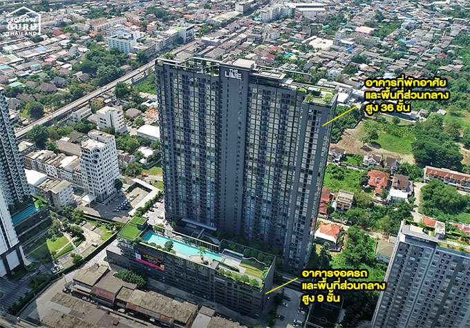 อาคารชุดพักอาศัย : มี 2 อาคาร ประกอบไปด้วย อาคารพักอาศัย 1 อาคาร 36 ชั้น, อาคารจอดรถ 1 อาคาร 9 ชั้น