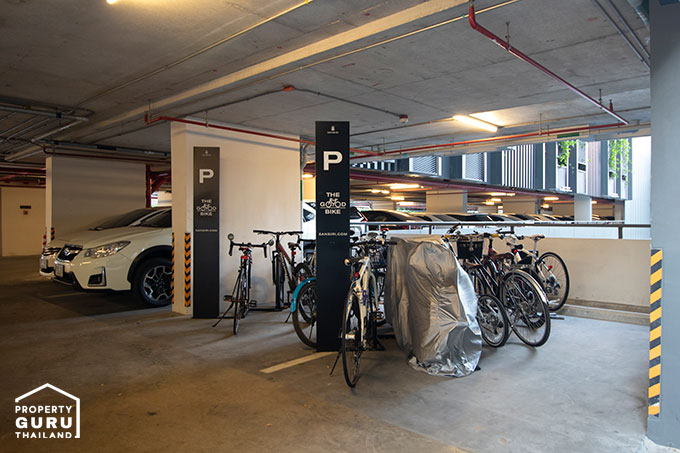 เข้ามาดูที่จอดรถภายในอาคารกันก่อนค่ะ มีโซนสำหรับจอดจักรยานด้วย