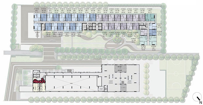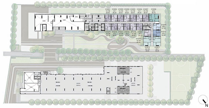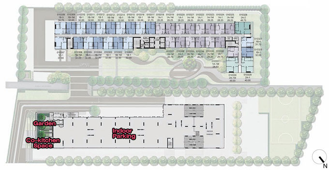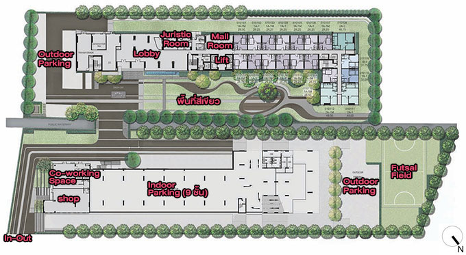 ส่วนพื้นที่ส่วนกลางในอาคารจอดรถจะเริ่มที่ชั้นนี้เช่นกัน