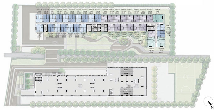 จำนวนห้องพักอาศัย : 1,287 ยูนิต + ร้านค้า 1 ยูนิต