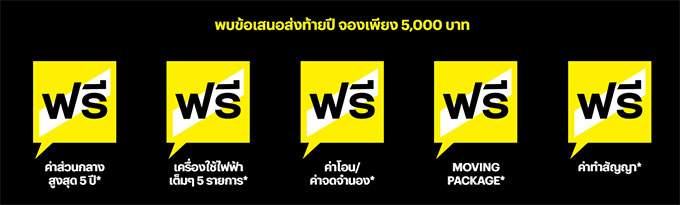 - ฟรี! ค่า Moving Package มูลค่ารวมสูงสุด 5,000 บาท