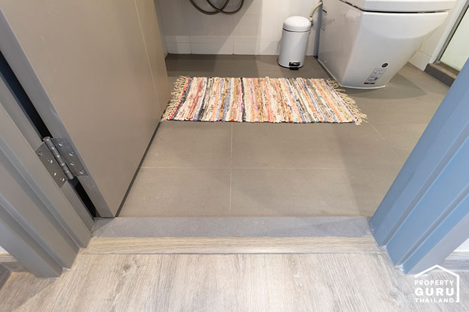 มาที่ห้องน้ำกันบ้าง พื้นจะ Drop ลงไปประมาณ 3 เซนติเมตร เพื่อป้องกันน้ำไหลออกมานอกห้อง