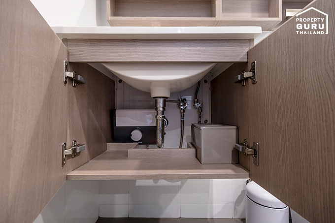 ทางโครงการติดตั้งระบบทำน้ำร้อนน้ำเย็นมาให้เรียบร้อย ทั้งบริเวณอ่างล้างหน้าและส่วนอาบน้ำ