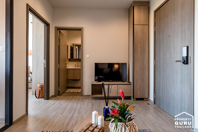 เปิดประตูเข้ามาก็จะเจอพื้นที่ห้องรับแขกก่อนเลย ถัดไปเป็นห้องนอน, ห้องครัว ตามลำดับ