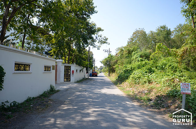 บรรยากาศต้นซอย ถนนเป็น 2 เลนสวนกัน