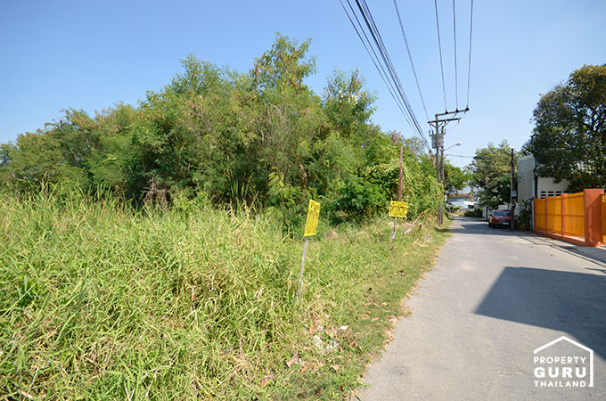 ด้านหลังโครงการค่ะ ยังไม่มีการปรับพื้นที่ ขวามือคือ บ้านพักอาศัย ไม่มีตึกสูงในระยะประชิด