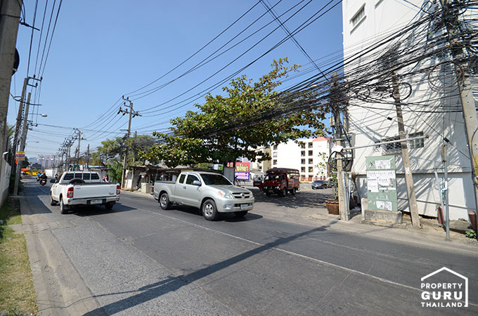 บรรยากาศ 2 ข้างทางไป Sales Office ยังคงเป็นบ้านพักอาศัยและอาคารพาณิชย์สูงไม่เกิน 4 ชั้น ซอยศรีนครินทร์ 42 นั้นสามารถทะลุไปยังซอยสุขุมวิท 101/1 (วชิรธรรมสาธิต) เชื่อมไปรถไฟฟ้า BTS สถานีปุณณวิถีได้