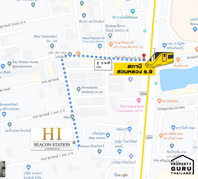 ไฮ ซีคอน สเตชั่น คอนโด (HI Seacon Station Condo) ตั้งอยู่ภายในซอยศรีนครินทร์ 42 จากปากซอยเข้าไปประมาณ 400 ม. ไม่ไกลจากถนนศรีนครินทร์และรถไฟฟ้าสายสีเหลือง (สถานีสวนหลวง ร.9) อีกทั้งยังใกล้ห้างใหญ่อย่าง Seacon Square และ Paradise Park