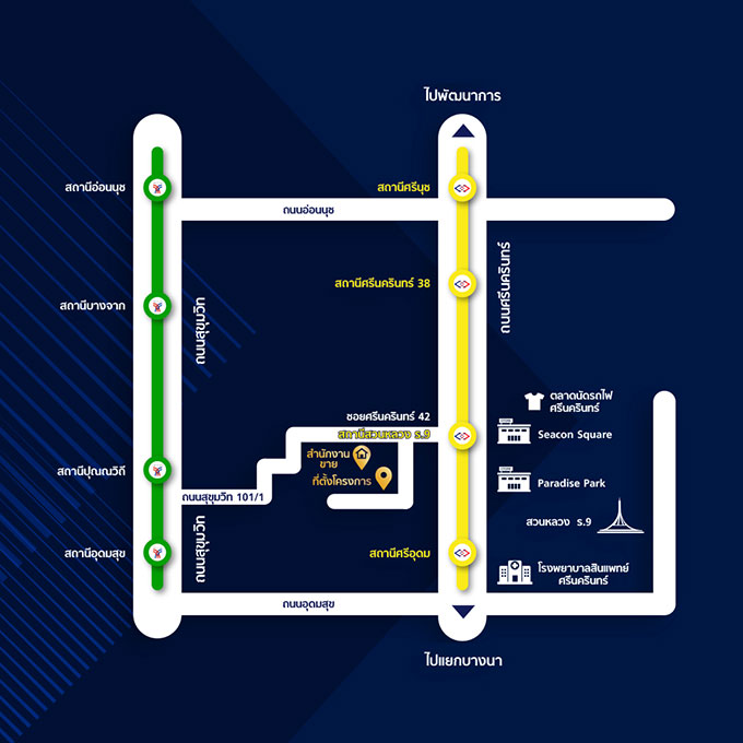 - ที่ตั้งโครงการ : ซอยศรีนครินทร์ 42 ถนนศรีนครินทร์ แขวงหนองบอน เขตประเวศ กรุงเทพมหานคร