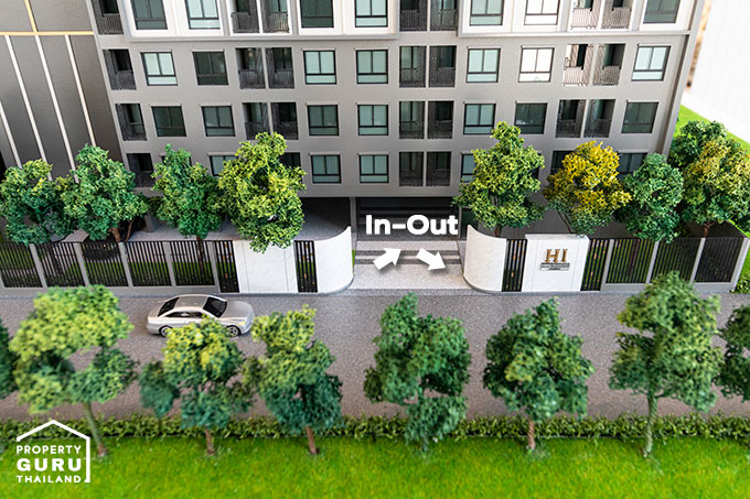 ทางเข้า-ออกโครงการ ใต้อาคาร A