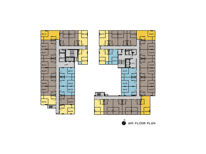 Floor Plan ชั้น 6 : เป็นส่วนพักอาศัยทั้งหมด