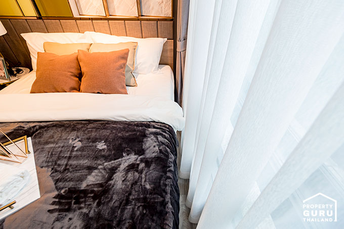 ด้านข้างสามารถวางโต๊ะข้างเตียงหรือ Built-in ตู้เสื้อผ้าได้