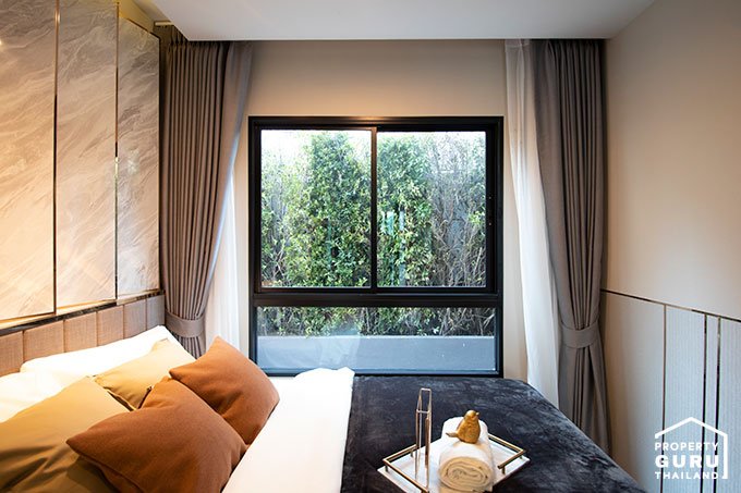 ไปดูภายในห้องนอนกันค่ะ สามารถวางเตียง Queen Size ขนาด 5 ฟุต ได้สบายๆ