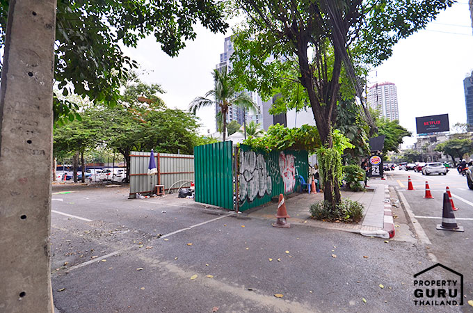 รั้วเขียวๆ ตรงนั้น แต่เดิมเป็นส่วนหนึ่งของที่จอดรถ Market Place Thonglor