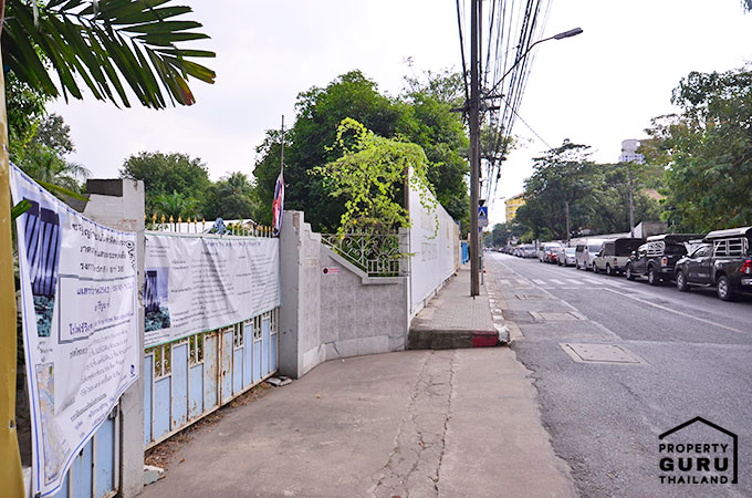 ข้ามถนนมาฝั่งที่ตั้งโครงการค่ะ โครงการเพื่อนบ้าน HQ by Sansiri ค่ะ