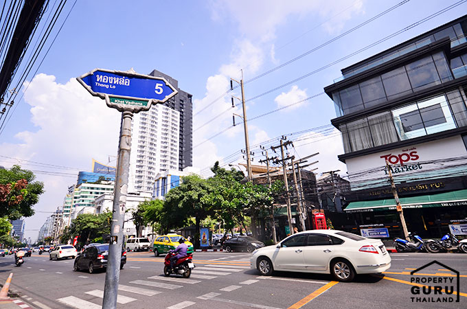 เดินไปเรื่อยๆ ถึงปากซอยทองหล่อ 1 เป็นที่ตั้งของ The Bangkok Thonglor จาก Land & Houses