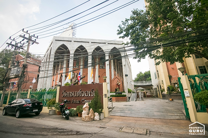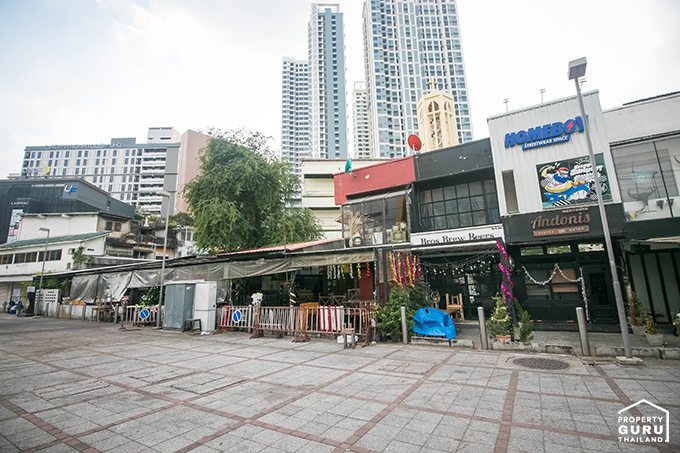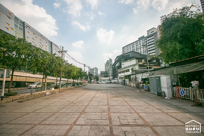 ด้านซ้ายจะเป็นพื้นที่ของมหาวิทยาลัยเซนต์จอห์น ส่วนทางขวาจะเป็นแนวอาคารพาณิชย์
