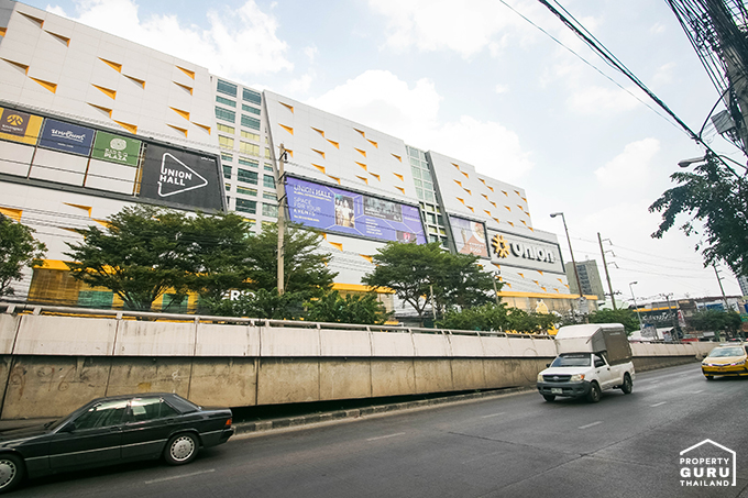 อีกฝั่งของถนนเป็นยูเนี่ยนมอลล์ มีร้านค้า ร้านอาหารเยอะมาก