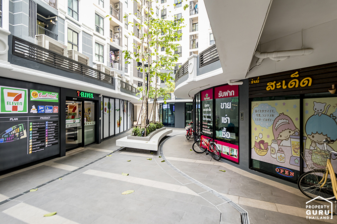 ก่อนจะชวนเพื่อนไปปิคนิคได้ก็ต้องมีขนมมีเครื่องดื่มกันก่อน ซึ่งไม่ต้องไปไหนไกลเลยค่ะ เพราะด้านหน้าของโครงการนั้นเป็น Community Mall มีทั้งร้านสะดวกซื้อ ร้านขายยา ร้านกาแฟ ร้านอาหารนานาชนิด