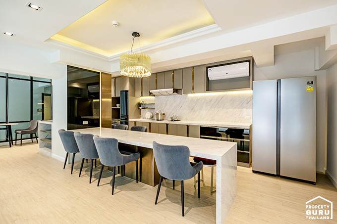 ครัวจะเป็นครัวเปิดที่กว้างมากๆ เชื่อมต่อกันกับพื้นที่รับประทานอาหารคนที่ชอบทำอาหาร ปาร์ตี้น่าจะถูกใจค่ะ