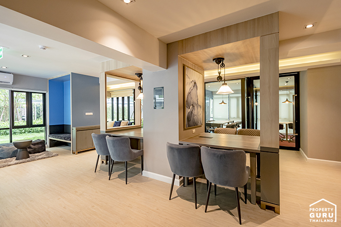 สามารถวางโต๊ะรับประทานอาหารขนาด 6-8 ที่นั่งได้สบายๆ เลยค่ะ