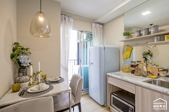ทางโครงการจัดเตรียมให้ทั้งตู้เย็น เตาอบ เตาไฟฟ้า อุปกรณ์ครัวครบครัน ใครอยากปาร์ตี้ตรงนี้เหมาะมากๆ เลยค่ะ