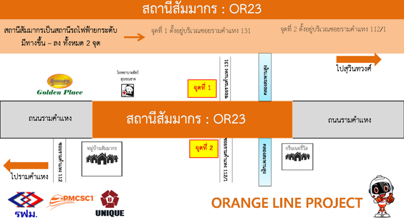 - ทางขึ้นลงจุดที่ 2 ตั้งอยู่บริเวณซอยรามคำแหง 112/1