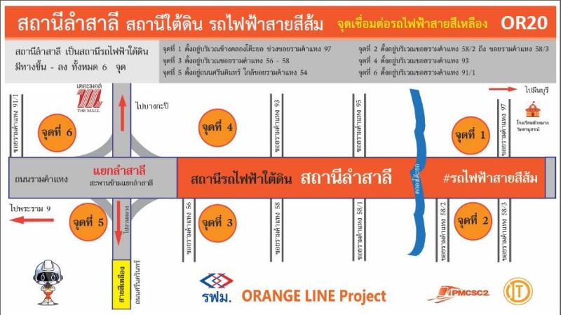 - ทางขึ้นลงจุดที่ 6 ตั้งอยู่บริเวณซอยรามคำแหง 91/1