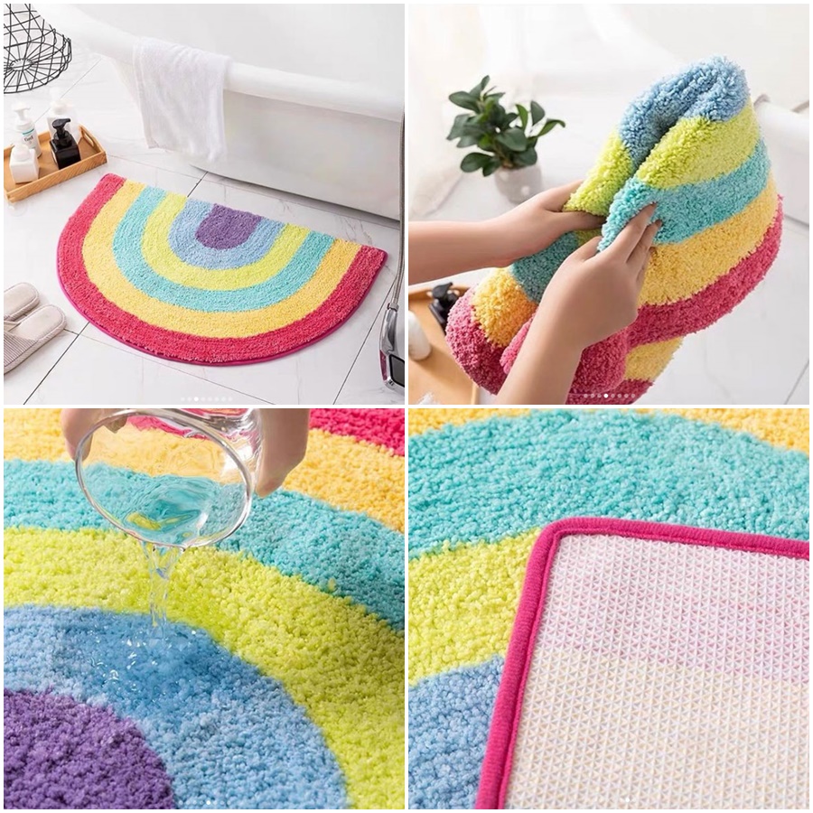 พรมเช็ดเท้าทรงครึ่งวงกลมลายสายรุ้ง นุ่มๆ น่ารักสดใส ซับน้ำได้ดี มีกันลื่นด้านหลัง ราคา 690 บาท
