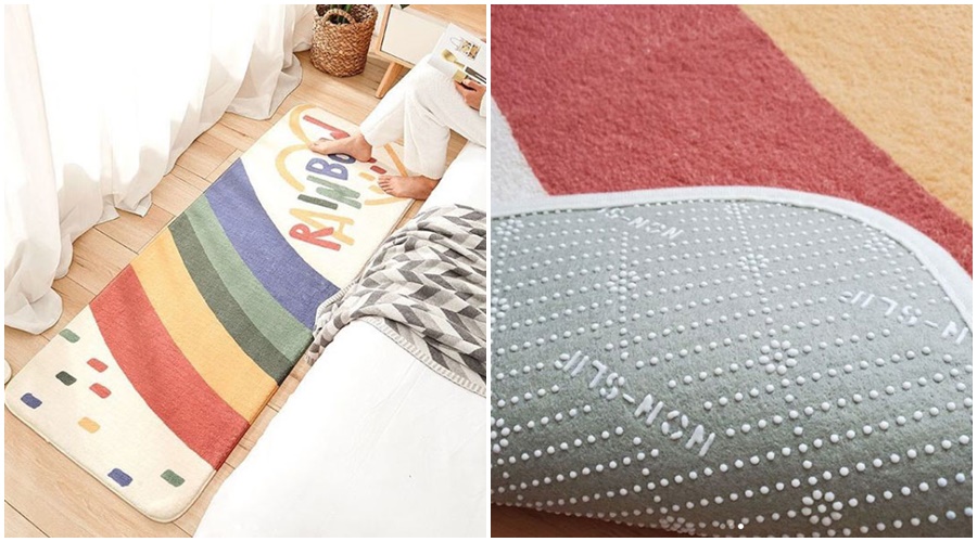 พรมสายรุ้งทรงสี่เหลี่ยมผืนผ้า เอาไว้แต่งเป็นห้องนอนในฝัน มีกันลื่นด้านหลัง จะวางในห้องนอน ห้องนั่งเล่น