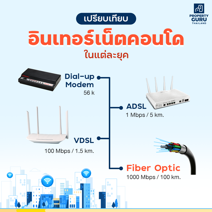 สำหรับคอนโดที่มีอายุแล้ว หรือบางคอนโดก็อาจจะก่อสร้างมาโดยที่ไม่ได้รองรับการเดินสายของ Fiber Optic ซึ่งเมื่อเราไปสอบถามกับทางผู้ให้บริการอินเทอร์เน็ตแล้ว เขาอาจจะบอกเราว่าสามารถติดตั้งได้ ซึ่งก็ติดตั้งได้แค่ในส่วนที่เป็น Fiber Optic จากนอกอาคาร แต่พอเป็นสายที่แยกเข้าไปในห้องแล้ว ก็ยังเป็นสายทองแดงแบบเดิมอยู่ดีค่ะ ทั้งนี้เกิดจากข้อจำกัดในเรื่องของความเร็วในการรับส่งสัญญาณอินเทอร์เน็ตนั่นเอง เช่น ต่อให้ใช้แพ็กเกจอินเทอร์เน็ตด้วยความเร็ว 1000 Mbps แต่สายทองแดงก็รองรับได้แค่ 150 mbps เท่านั้นค่ะ