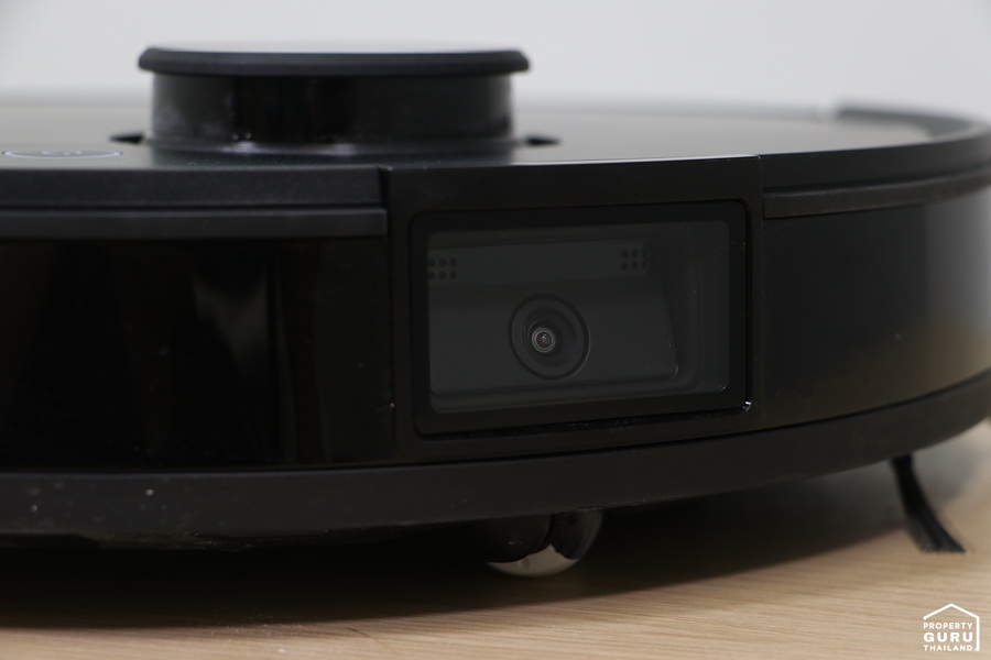 ตัวเครื่องสีดำมีลักษณะทรงกลมสวยงาม มีเลเซอร์วัดระยะทางสำหรับสแกนเพื่อสร้างแผนที่ และตรวจวัตถุต่างๆ