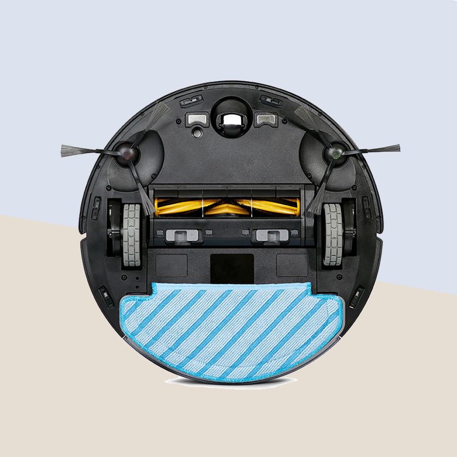 ด้านใต้เครื่องจะประกอบด้วย แปรงกวาด 2 ข้างซ้าย/ขวา ตรงกลาง (สีเหลือง)