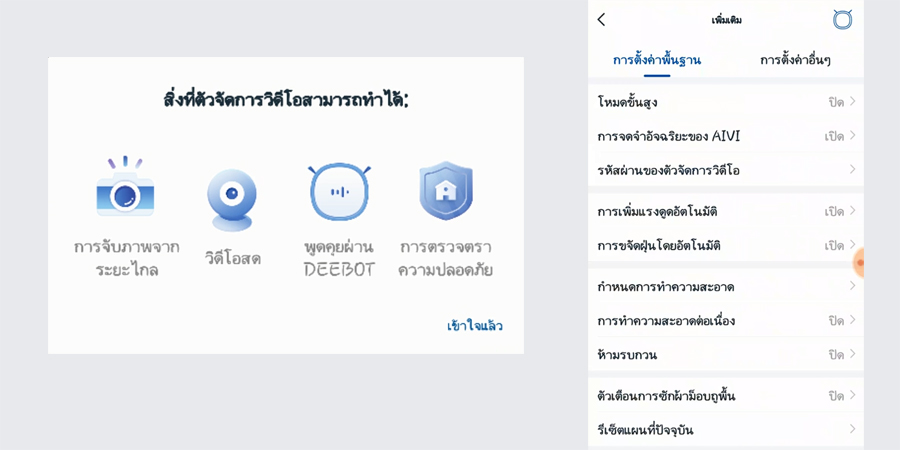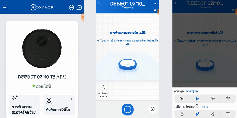 ส่วนการทำงานของเจ้าหุ่นยนต์ดูดฝุ่น "Ecovacs Deebot Ozmo T8 AIVI" จะใช้งานควบคู่กับแอปพลิเคชัน Ecovacs Home ที่สามารถสั่งให้เครื่องทำงานได้จากทุกที่ทุกเวลา และยังมีเมนูภาษาไทยอีกด้วย เรียกว่าใช้งานง่ายและสะดวกสุดๆ
