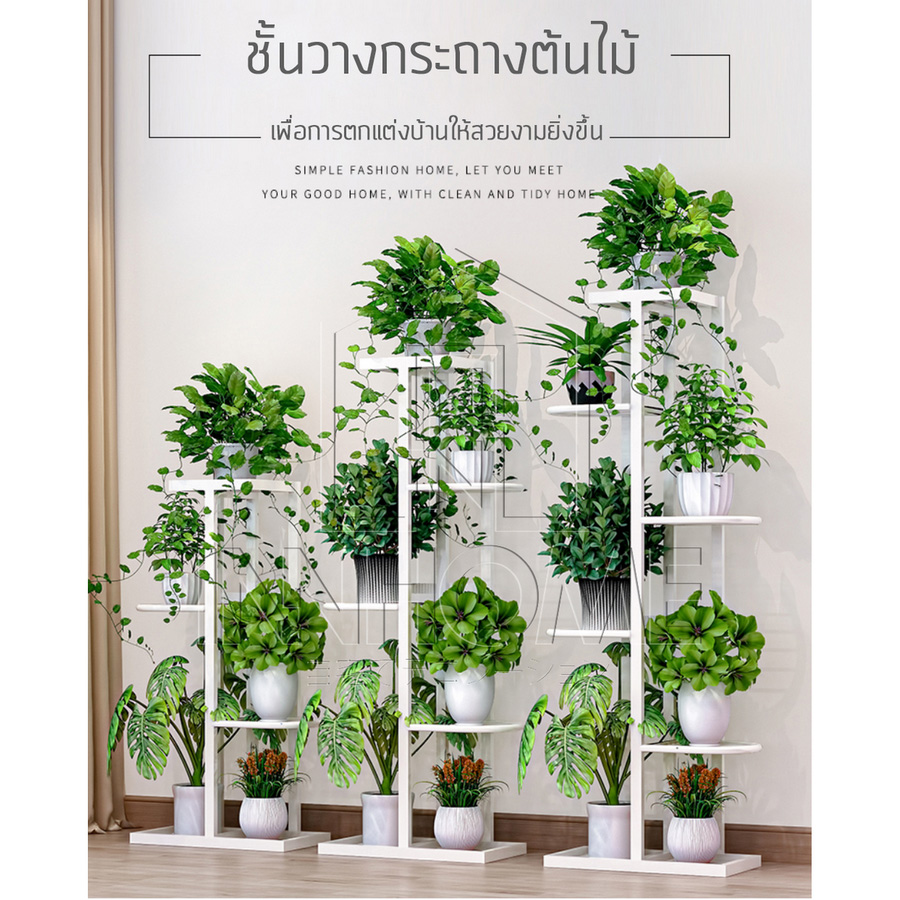 สุดท้ายนี้เป็นชั้นวางต้นไม้แบบหลากหลายไอเดีย สามารถวางกระถางต้นไม้ก็ได้ หรือจะนำมาแขวนกระถางต้นไม้ก็ได้เช่นกัน มีลักษณะเป็นชั้นแนวสูง ทำให้ประหยัดพื้นที่สำหรับชาวคอนโด แถมยังวางกระถางต้นไม้ได้เยอะมากๆ อีกด้วย จะวางประดับไว้ภายในห้องก็ได้ หรือถ้ามีต้นไม้เยอะมาก ก็วางไว้ที่ระเบียงก็จะทำให้น้องๆ ได้รับแสงแดดได้อย่างทั่วถึงค่ะ สำหรับสินค้าตัวนี้ น่าจะมีขายในเว็บ Online Shopping ทั้ง Shopee และ Lazada อยู่นะคะ