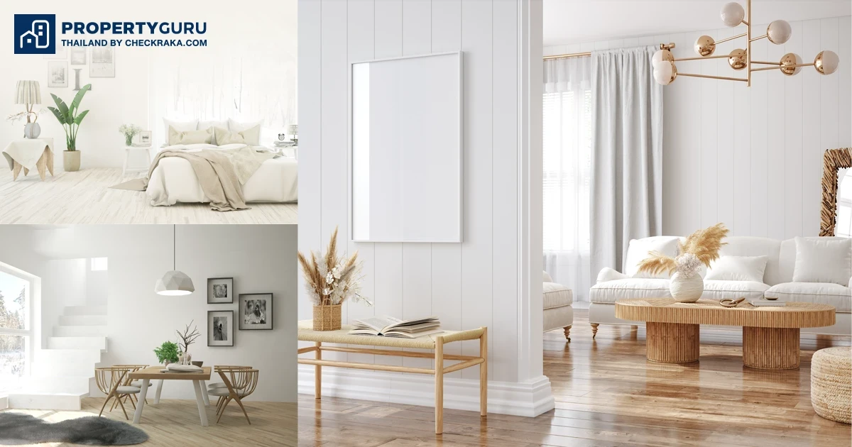 วอลเปเปอร์ดีไซน์เป็นแบบอิฐสีขาว ตัดกับผ้าม่านสีเทา หรือจะเพิ่มลูกเล่นด้วยการใช้เก้าอี้สไตล์สแกนดิเนเวียนสีดำตัดกับสีโทนของห้อง ให้ดูมีความโดดเด่นขึ้นมา