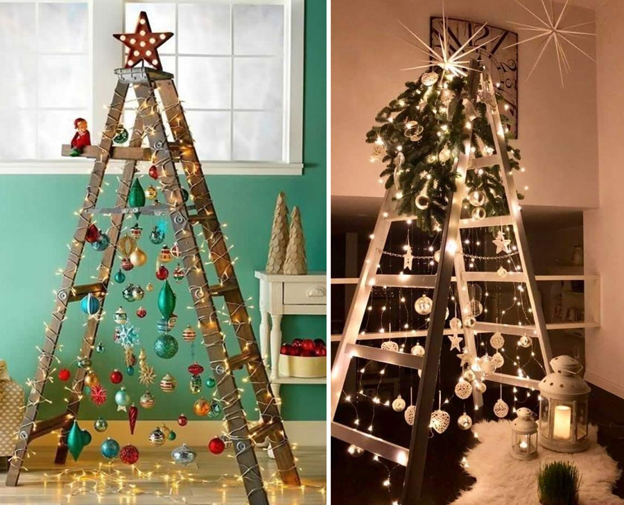ไม่อยากเชื่อว่าบันไดช่างก็สามารถนำมาเปลี่ยนให้กลายเป็นต้นคริสต์มาสได้